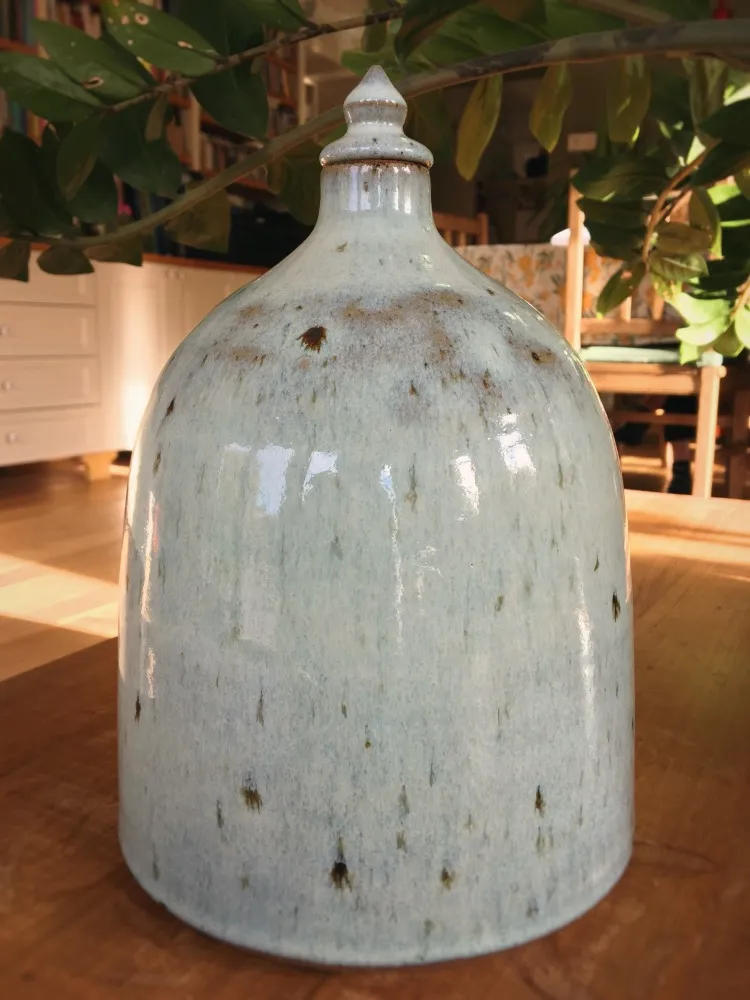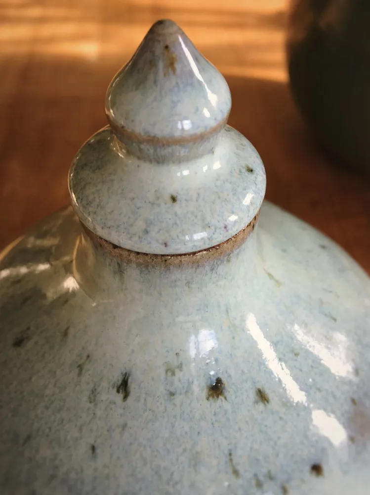 Model Panteli, volume 3 liter, geglazuurd in nuka grijs, met stilistisch dekseltje